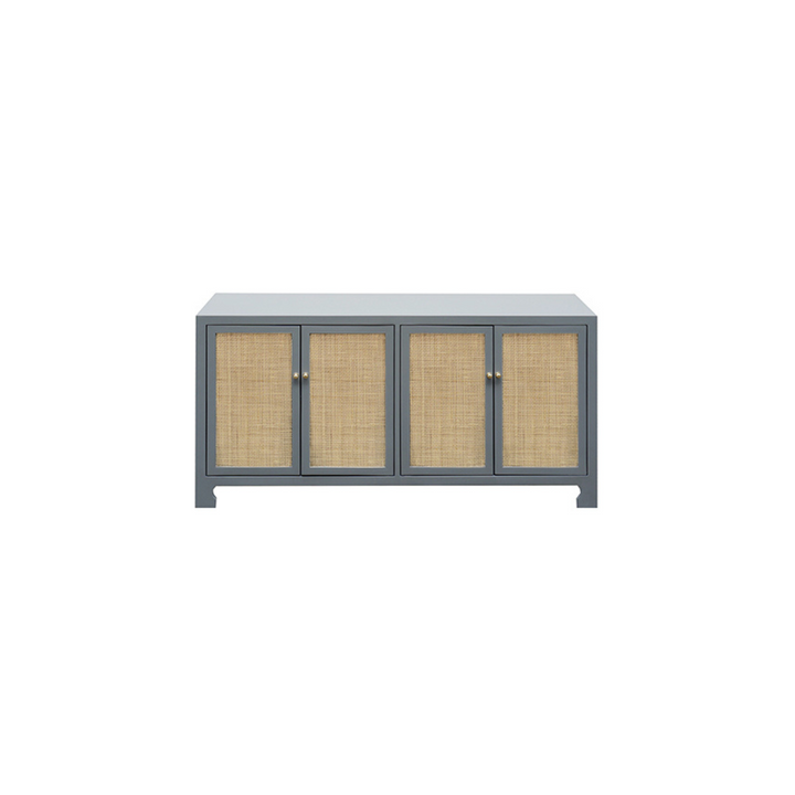 The Williams Sideboard blends British West Indies style with modern design, featuring natural hand-woven caning set against a matte grey finish. Its adjustable shelves offer versatile storage, making it ideal for both coastal retreats and urban lofts. This piece delivers understated sophistication and functional elegance to any interior.