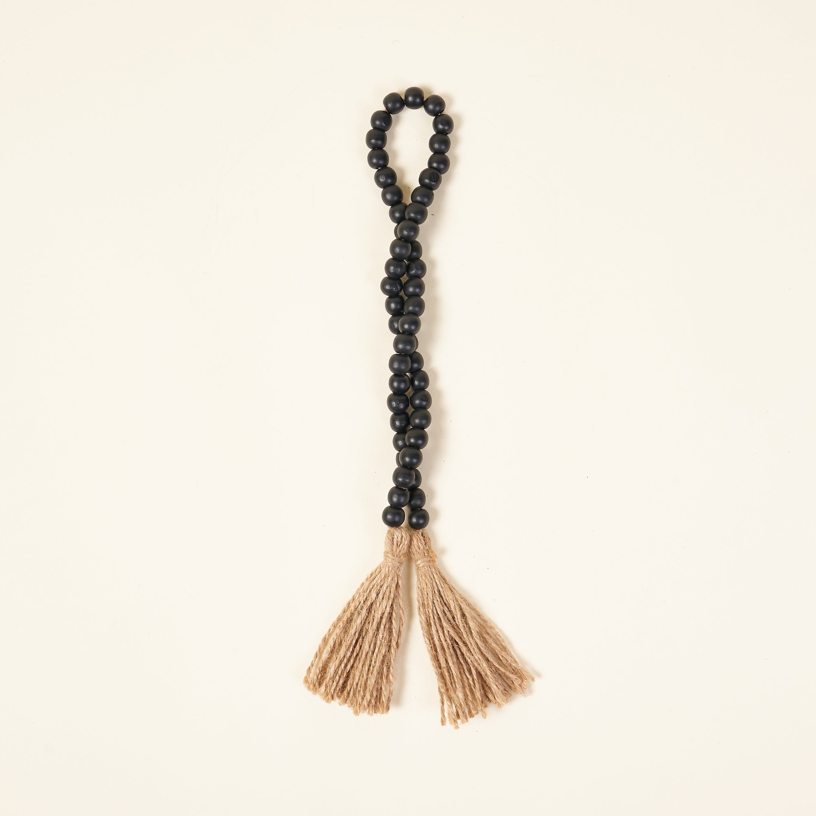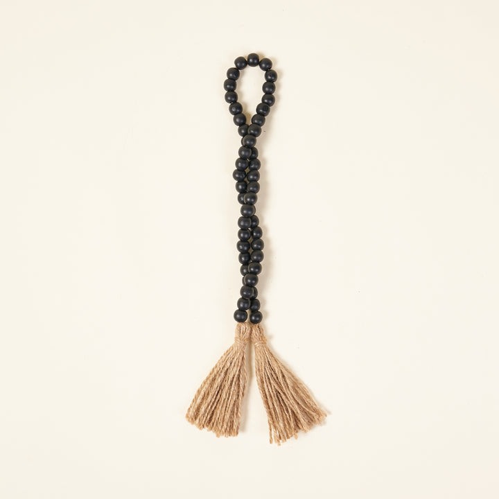 This alluring and bold wood bead garland with jute tassels will be a handsome addition to your decor. Natural and eclectic this garland will be a unique accent or accessory for many home decor displays and styles.
