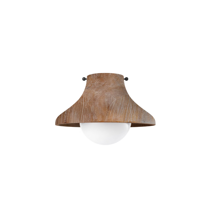 Elevate your space with the Wood Flush Mount. The white-washed, limed oak finish highlights the sleek shade's wood grain texture while providing warm, diffused lighting through the beautiful milk glass globe. Ideal for hallways, sinks, bedrooms, or low ceilings, this fixture adds a touch of coastal charm to any room.