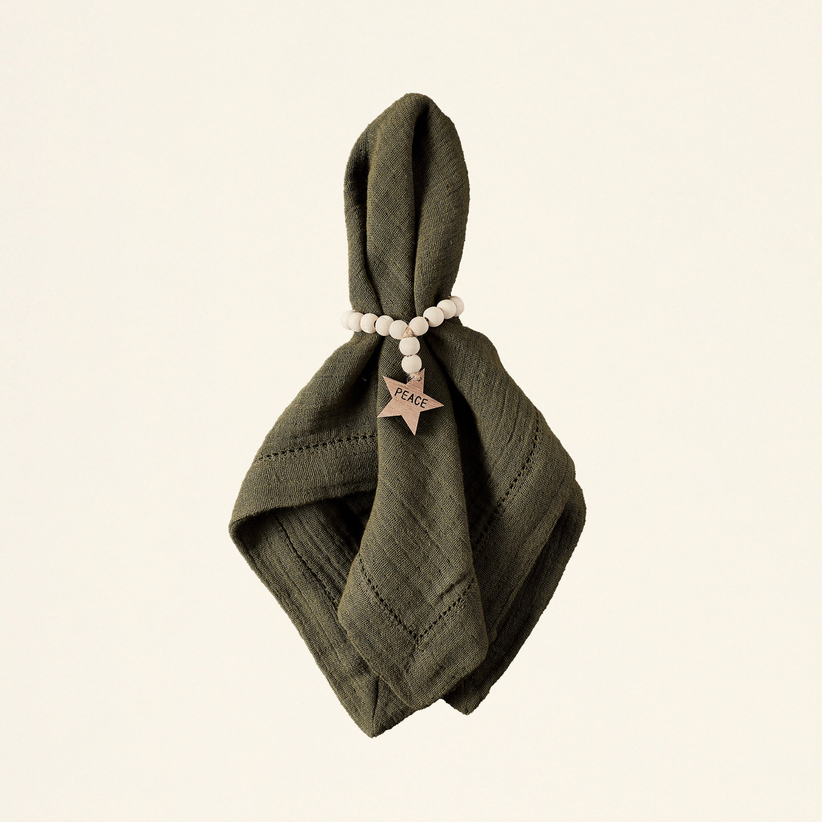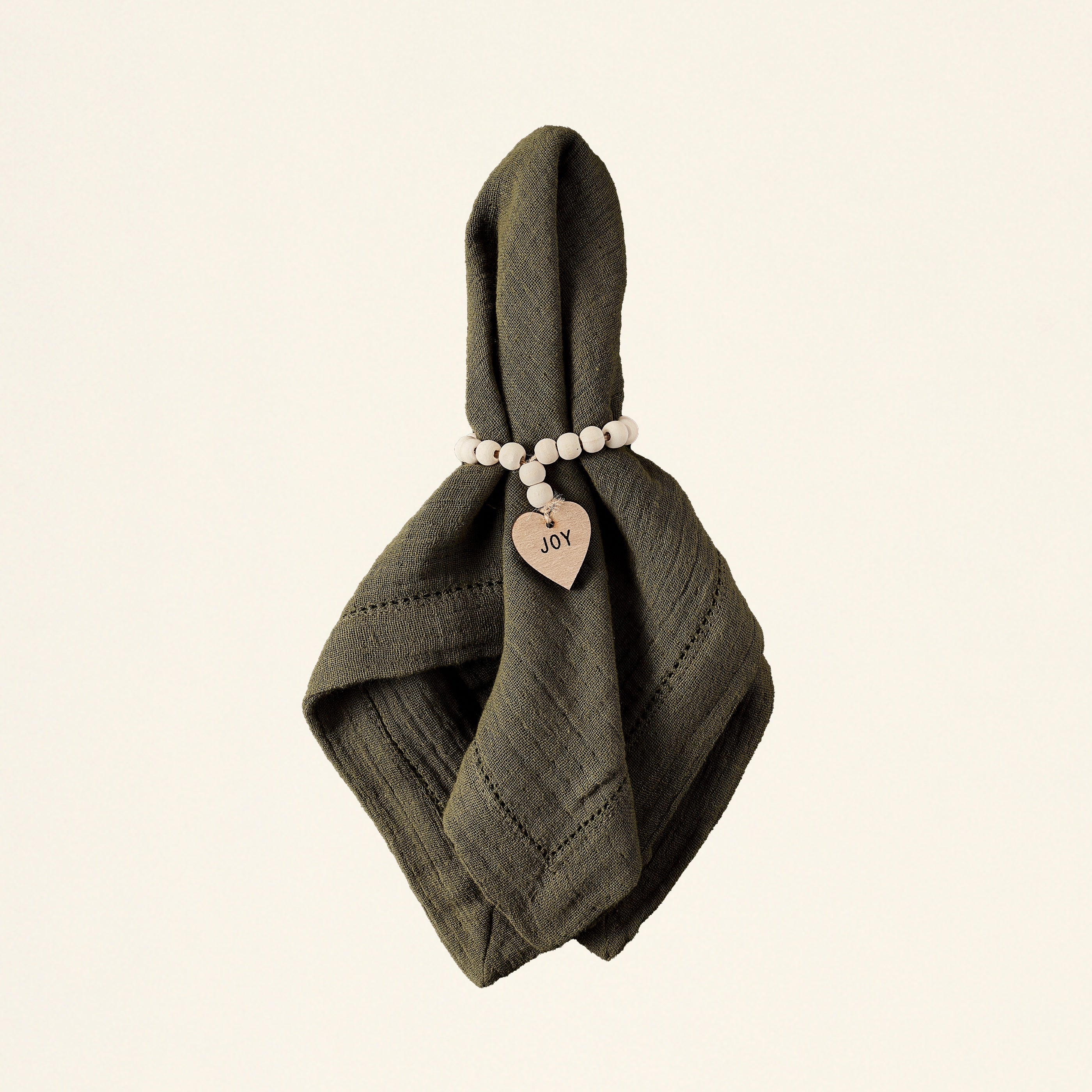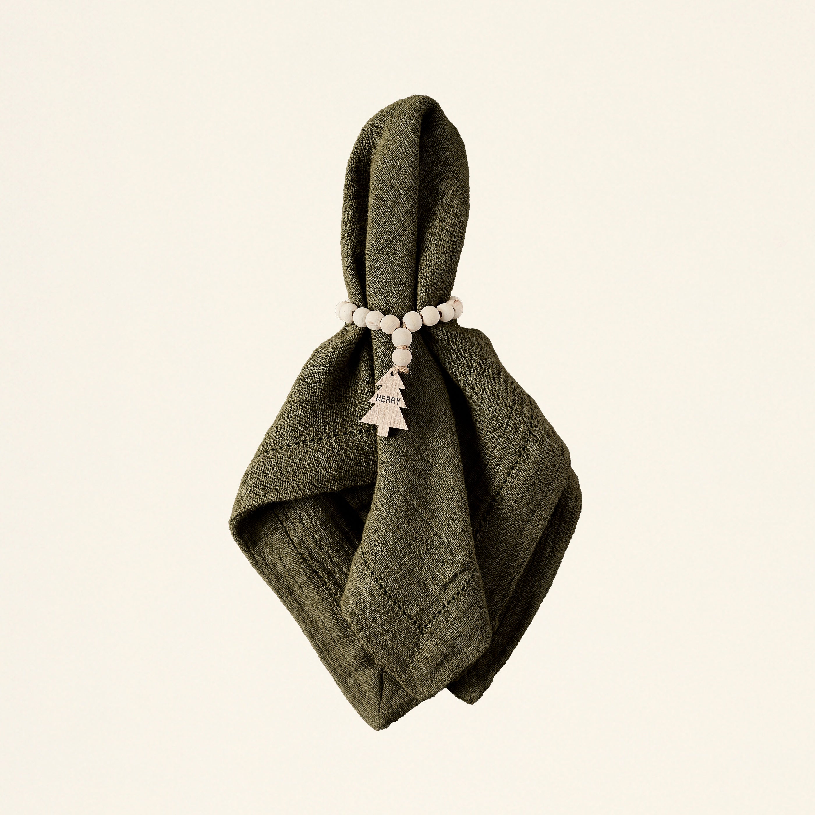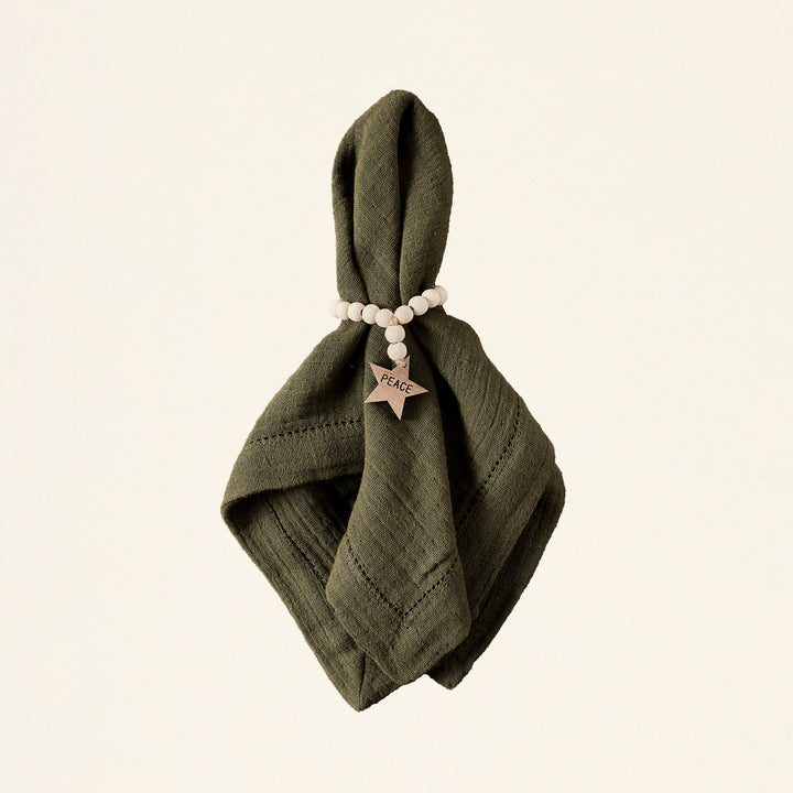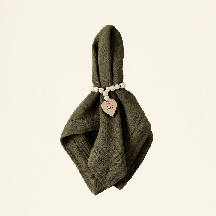 A beautiful way to get into the holiday spirit. This Wood Charm Napkin Rings Set of 4 includes four rings of the same design, made with festive wood bead garlands. They're a beautiful way to add a cozy and charming touch to your dinner party table this season. You can choose from three different styles to perfectly match your holiday dΓ©cor.