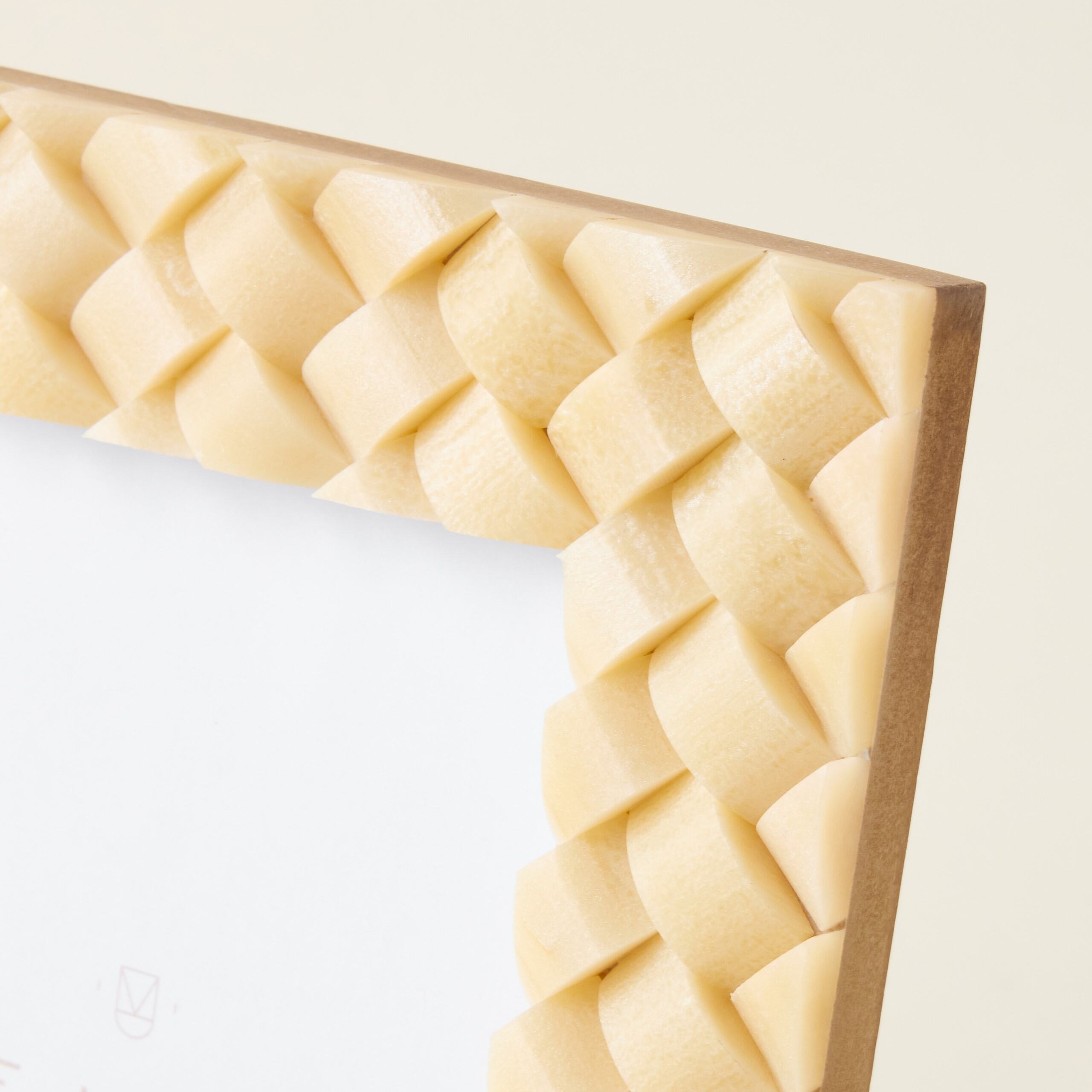 Display precious memories in style with this elegant woven-resin photo frame. The ivory-colored frame holds a 5" x 7" photo, and provides an attractive way to display your most treasured memories. A perfect addition to any bookshelf, tabletop, or mantel.
