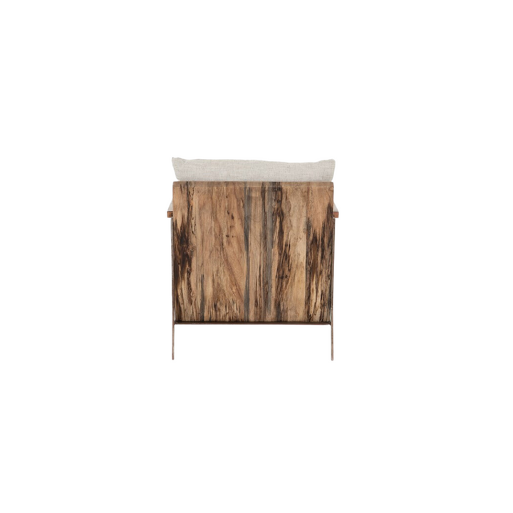 The Ziggy Arm Chair is the perfect combination of statement-making style and practicality. Expertly crafted from spalted primavera and oxidized iron, with performance fabric upholstery, it offers both a strong frame and a resilient surface that stands up to spills, stains, and high traffic. Enjoy long-term comfort and unmatched durability from this modern classic.